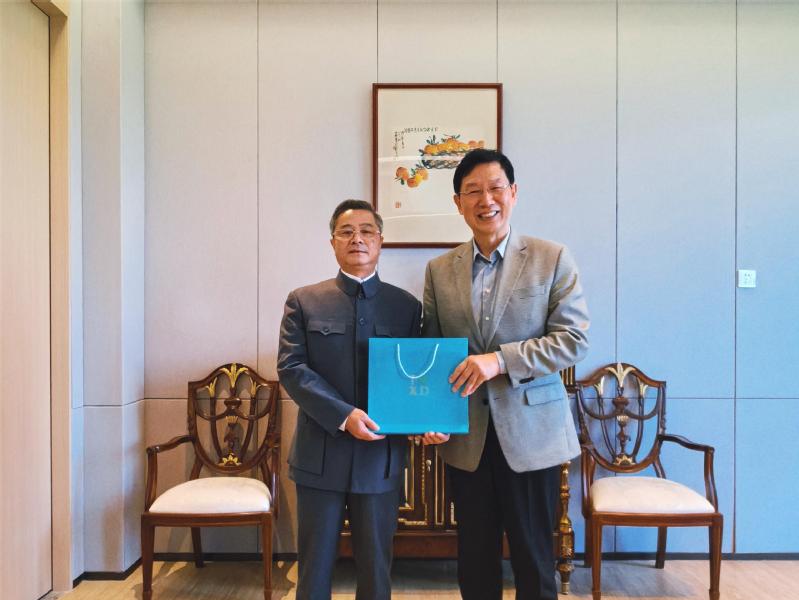 (校长郑方贤向汪教授赠送了纪念礼)