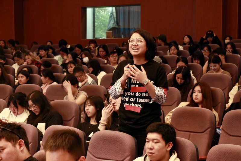 互动环节中,同学们踊跃提问,气氛十分热烈,沈总一一作答。参加此次讲座的同学们纷纷表示,通过近距离聆听知名企业高管亲自授课,不仅极大地拓展了他们的视野,还显著提升了他们对新时代产业转型与企业创新的认识,深化了他们对产业发展和企业管理的理解。同学们还表达对此类精彩讲座的强烈期待,同时,他们也对报选《新时代中国产业转型》《新时代中国产业创新》创新型通识课程表现出极大的热情。