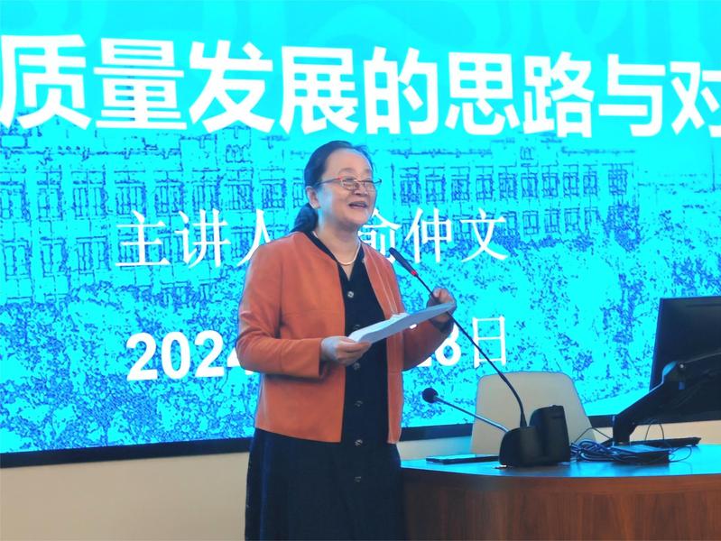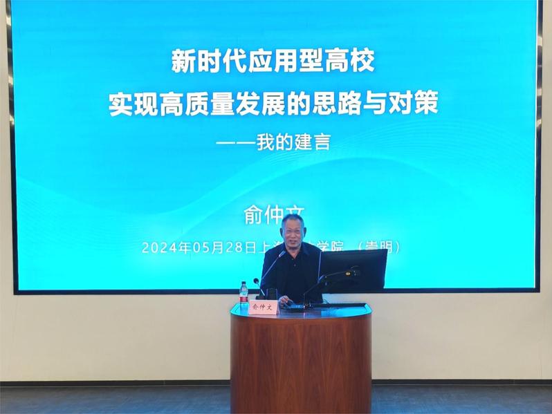 5月28日,学校特邀享受国务院特殊津贴专家、英国胡佛汉顿大学管理学名誉博士,原中国职业技术教育学会副会长(三届)兼民办职教分会会长、全国中华职教社专家委员会专家、国家教育部专家俞仲文研究员,来校开展题为“新时代应用型高校实现高质量发展的对策与建言”的专题讲座并进行指导交流。李进执行董事长、郑方贤校长、梁副校长、徐征副校长和教务处等职能部门负责人、各院院长、教师等参会。讲座由梁副校长主持。