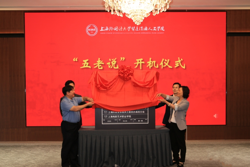 图2.市民办高校党工委副书记江鸿波与上海电影艺术职业学院党总支书记顾兰英共同为“五老说”开机打板