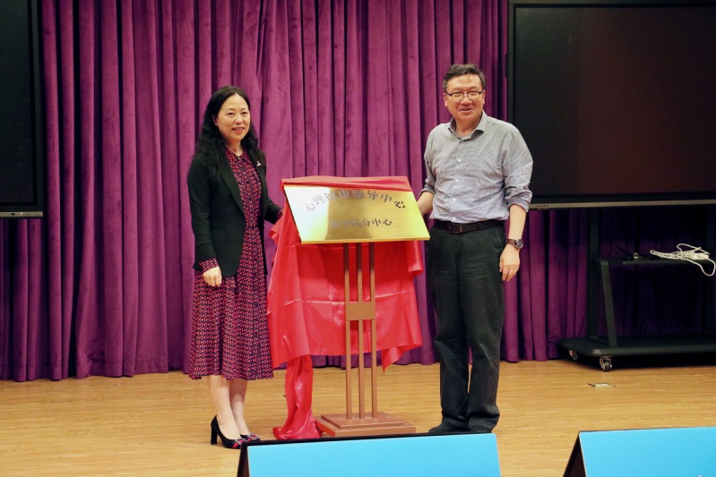 校党委副书记王科与商学院党总支书记姜雅净为商学院心理分中心揭牌,宣告商学院心理分中心正式成立。