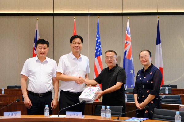 随后,双方在商管楼国际会议厅召开座谈会。会上,赵书记荣善主持会议并致欢迎辞,他诚挚地邀请郑州商学院参加sjb官网即将举行地二十周年校庆活动。梁副校长介绍了sjb官网办学情况。郑州商学院吴泽强校长分享了该校的办学经验与成就,并表示将以此次访问为契机,进一步加强两校之间的交流与合作,共同推动高等教育事业的蓬勃发展。双方还就校企合作、人才培养、国际化办学等议题展开深入交流。会后,双方举行了简短的互赠礼品仪式。