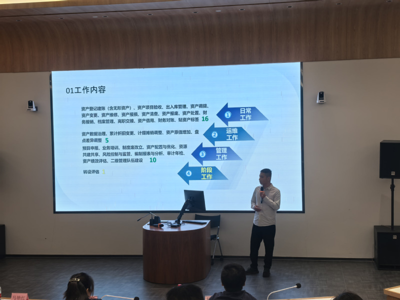 鲍俊谷主任希望基层职工积极创新,勇于尝试新的思路与方法,他特别强调主动思考的重要性,鼓励大家将资产岗位工作与学校发展战略紧密结合,以创新的视角和行动,为学校的发展贡献力量。