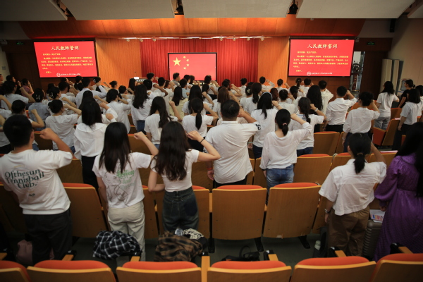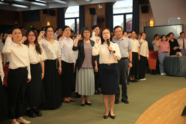 在第一阶段培训总结会上,32名优秀学员获得表扬。全体新教工在校长助理季萍领誓,党委副书记王科、副校长马艳红监誓下进行庄严的入职宣誓。优秀学员代表张石伟、晁婕上台发言,感谢学校提供的系统化入职培训,表示将尽快适应岗位要求,为学校发展做出贡献。