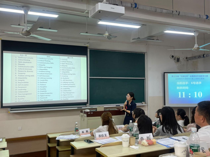 本次比赛由上海外国语大学、上海市外文学会和上海外语教育出版社联合主办,华东理工大学外国语学院承办。来自12所高校的17名教师参加了英语专业组和商务英语专业组的比赛。