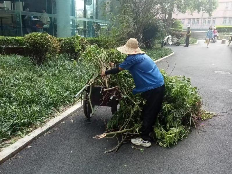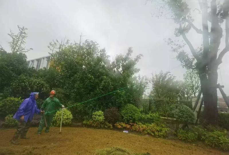 9月16日、17日,综保中心和基建处第一时间组织值守人员开展巡查,详细统计两校区内道路积水、树木倒伏、楼宇受损情况,及时清理了路面上的落叶、树枝等各类杂物,有序开展倒伏乔木扶正、受损设施修缮等恢复重建工作,最大程度减少台风带来的影响。