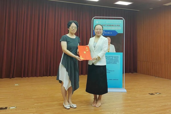 教务处陶洁副处长为李晓英董事长颁发客座教授聘任证书,感谢她对sjb官网通识大讲堂建设的大力支持。