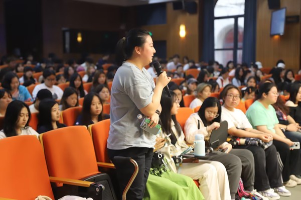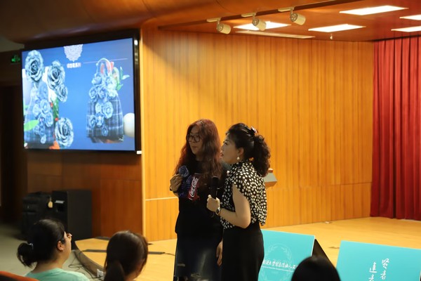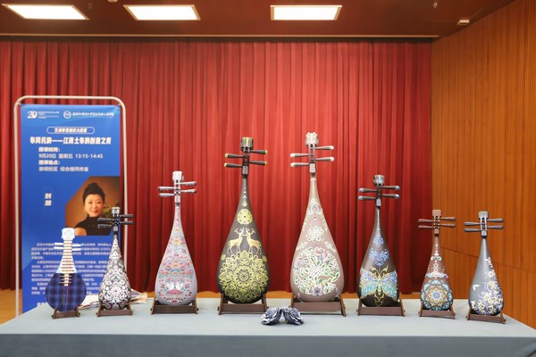 讲座期间,现场互动频繁,同学们纷纷就江南土布的保护、传承与创新等问题向刘慧教授提问。刘慧教授耐心解答,并与大家分享了自己的研究心得与体会。除此之外,刘慧教授还带来了团队的项目产学研成果与同学们分享,如各式各样江南土布创新的各式产品以及制作精美、创新纹样的浦东琵琶。整个讲座氛围热烈而融洽,充分展现了大家对江南土布这一非物质文化遗产的深厚情感与高度关注。