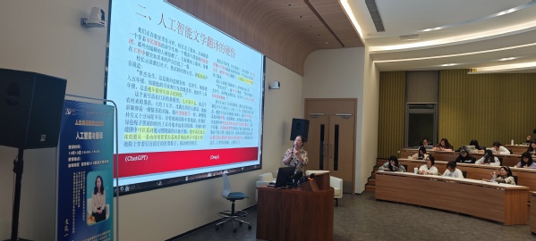 课堂上,袁教授以人机翻译对比的设想为出发点,从信息型文本、表演型文本和感染型文本翻译的区别入手,讨论人工智能从专业性走向通用性过程中人工智能文学翻译的硬伤。她表示,人工智能目前还远远不是一个合格的译者,并强调文学翻译的“任务”并不在于产出一个译本。