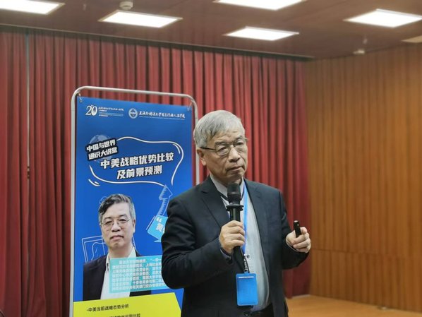 12月24日,复旦大学特聘教授、“一带一路”及全球治理研究院常务副院长、上海市美国学会名誉会长、上海科学院原副院长、著名国际问题专家黄仁伟研究员应邀走上sjb官网通识大讲堂“中国与世界”的讲坛,为贤达师生带来了一场题为“中美战略优势比较及前景预测”的精彩讲座。