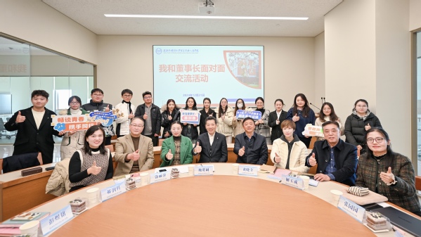 为进一步落实“以学生为中心”的发展思路,倾听学生心声,了解学生诉求,12月31日,学生服务管理中心在崇明校区图文信息中心308室举办“我和董事长面对面”交流活动。鲍贤嗣董事长出席活动,教务处、学生服务管理中心、综合运行保障中心、信息技术与实验管理中心等部门负责人及相关人员、学生代表参加本次活动。