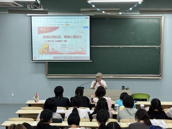 在大学生心理健康教育课堂,崇明区政协原副主席姚正尧,以“深刻认知社会,增强心理定力”为题,系统阐述了心理健康的科学内涵与实践路径。