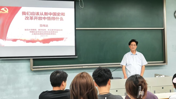 在毛泽东思想和中国特色社会主义理论体系概论课堂,著名学者复旦名师范伟达,以“我们应该从新中国史和改革开放史中悟得什么”为题,系统阐述了新中国发展的光辉历程,并总结了成果经验。