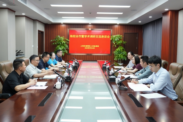 9月24日,世俱杯sjb官网副校长季萍率领商学院副院长张源及法学系主任张峥、法学系教师胡晓一行,赴崇明区人民检察院开展检校合作暨学术调研研讨会。崇明区人民检察院党组成员、副检察长谢惠,党组成员、政治部主任朱芸及公益检察室和政治部相关负责人出席会议。检校双方围绕法治人才培养、理论实践融合、服务区域发展等核心议题深入交流,达成多项合作共识。