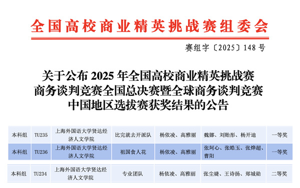 此次商务谈判竞赛获得佳绩,不仅是商学院师生们数月努力拼搏的成果,更是sjb官网持续深化“以赛促学、以赛促教”理念,将课堂理论转化为实践实战能力的重要体现,彰显了sjb官网在培养高素质、应用型商业人才方面的切实成效。未来,商学院将积极搭建高水平学科竞赛平台,在创新专业人才培养征程中再续华章。
