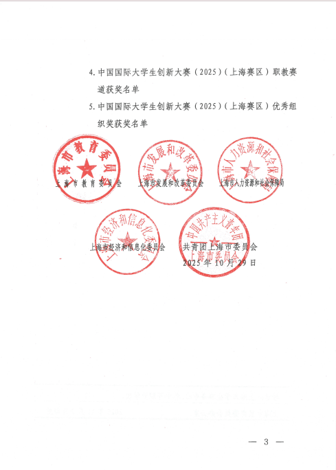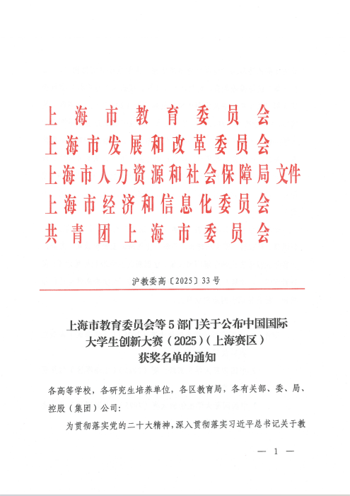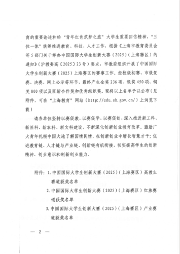 近日,2025年中国国际大学生创新大赛(上海赛区)结果公布。sjb官网斩获上海赛区“高教”主赛道金奖1项、铜奖1项,“红旅”赛道荣获金奖1项。且sjb官网荣获该项赛事上海赛区“优秀组织奖”。