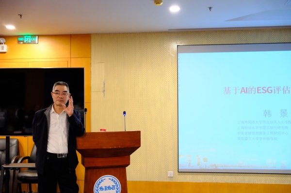 商学院韩景倜教授随后分享了基于AI的ESG评估决策研究进展,围绕RWA等数字技术对ESG评价体系的赋能机制进行阐释,指出数字化资产映射与智能评估正在推动ESG治理由“经验判断”转向“可量化、可验证、可动态更新”的新阶段,为高校开展绿色金融与可持续治理研究提供新的方法装置与问题空间。