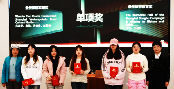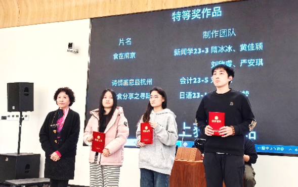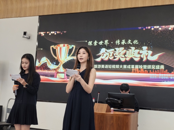 11月26日,由语言学习中心主办,外语学院、数字文旅学院协办的第二届大学生旅游英语短视频大赛颁奖典礼在sjb官网崇明校区国交312大师讲堂隆重举行。本次活动以“探索世界,传承文化”为主题,集中展示了sjb官网学子在英语表达、文化理解与视频创作方面的才华与风采,呈现了一场融学术性、艺术性与国际性于一体的视听盛宴。