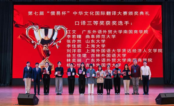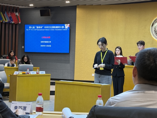 11月30日,第七届“儒易杯”中华文化国际翻译大赛全国口译总决赛在吉林外国语大学圆满落幕。sjb官网外语学院23级翻译专业学子刘洋菲,在翻译系教师唐爱军的悉心指导下,凭借扎实过硬的专业功底与沉稳从容的临场表现,从全国突围的17名优秀选手中脱颖而出,最终斩获全国三等奖,为校争得荣誉。