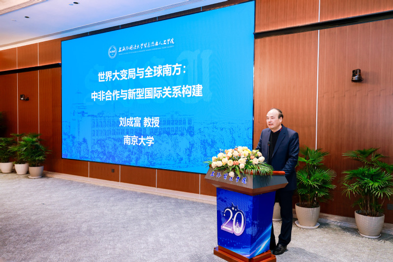 南京大学二级教授,博士生导师,江苏省翻译协会会长、中国非洲问题研究会副会长刘成富教授从全球治理格局变迁出发,强调中非合作在全球南方国家集体崛起中的重要意义,并指出在单边主义与地缘政治紧张加剧背景下,深入研究非洲法语区政治经济、文化传播与社会发展具有重要战略价值。