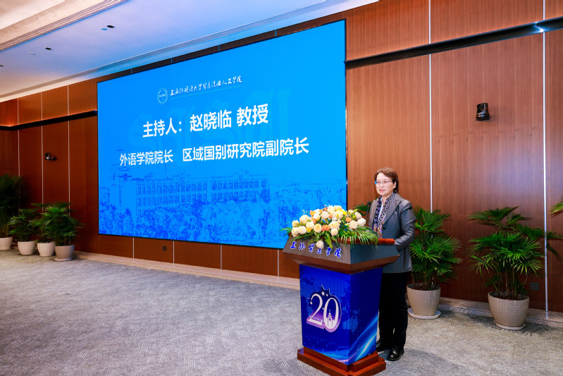 主旨报告环节由外语学院院长、区域国别院副院长赵晓临教授与校长助理、国际交流学院院长、区域国别院副院长陈娴主持。